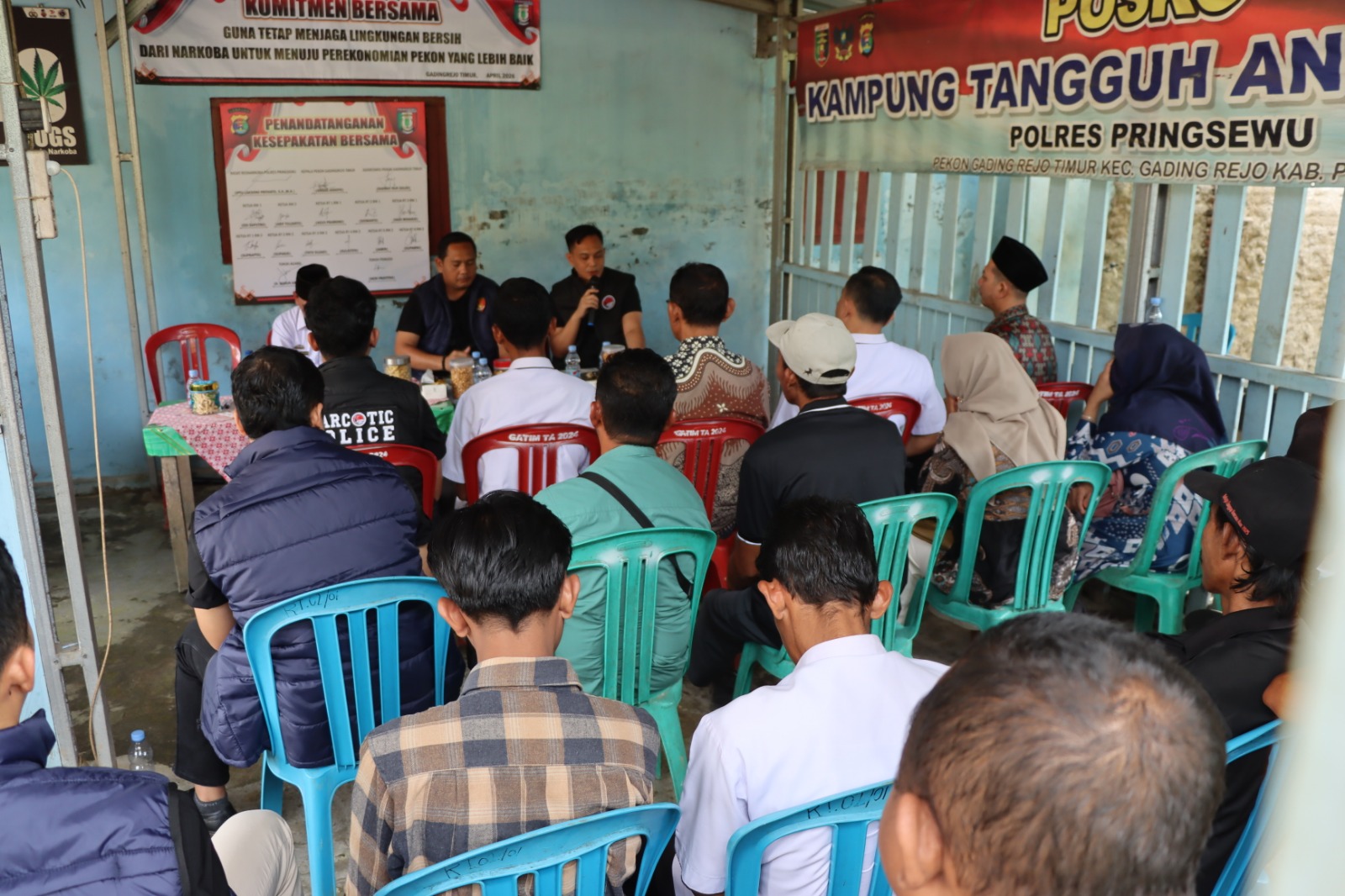 Kegiatan dipimpin langsung oleh Kasat Narkoba Polres Pringsewu, Iptu Laksono Priyanto, SH, sebagai bentuk komitmen nyata kepolisian dalam membangun lingkungan yang bersih dari peredaran narkotika.Pemilihan lokasi di posko Kampung Tangguh Anti Narkoba bukan tanpa alasan. Selain sebagai simbol penguatan komitmen bersama, keberadaan kampung tangguh ini juga diharapkan kembali menjadi garda terdepan dalam upaya pencegahan berbasis masyarakat.
